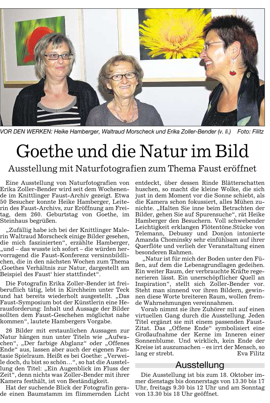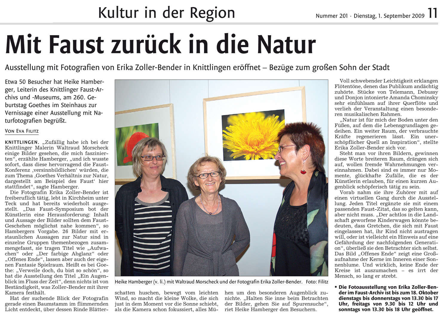 Dauer der Ausstellung: 30. August bis 18. Oktober 2009