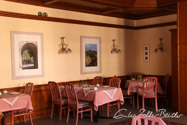 Im Frühstücksraum – dem Schmuckstück des im Zentrum gelegenen Hotels – werden im Wechsel der Jahreszeiten Fotografien aus der Natur präsentiert.